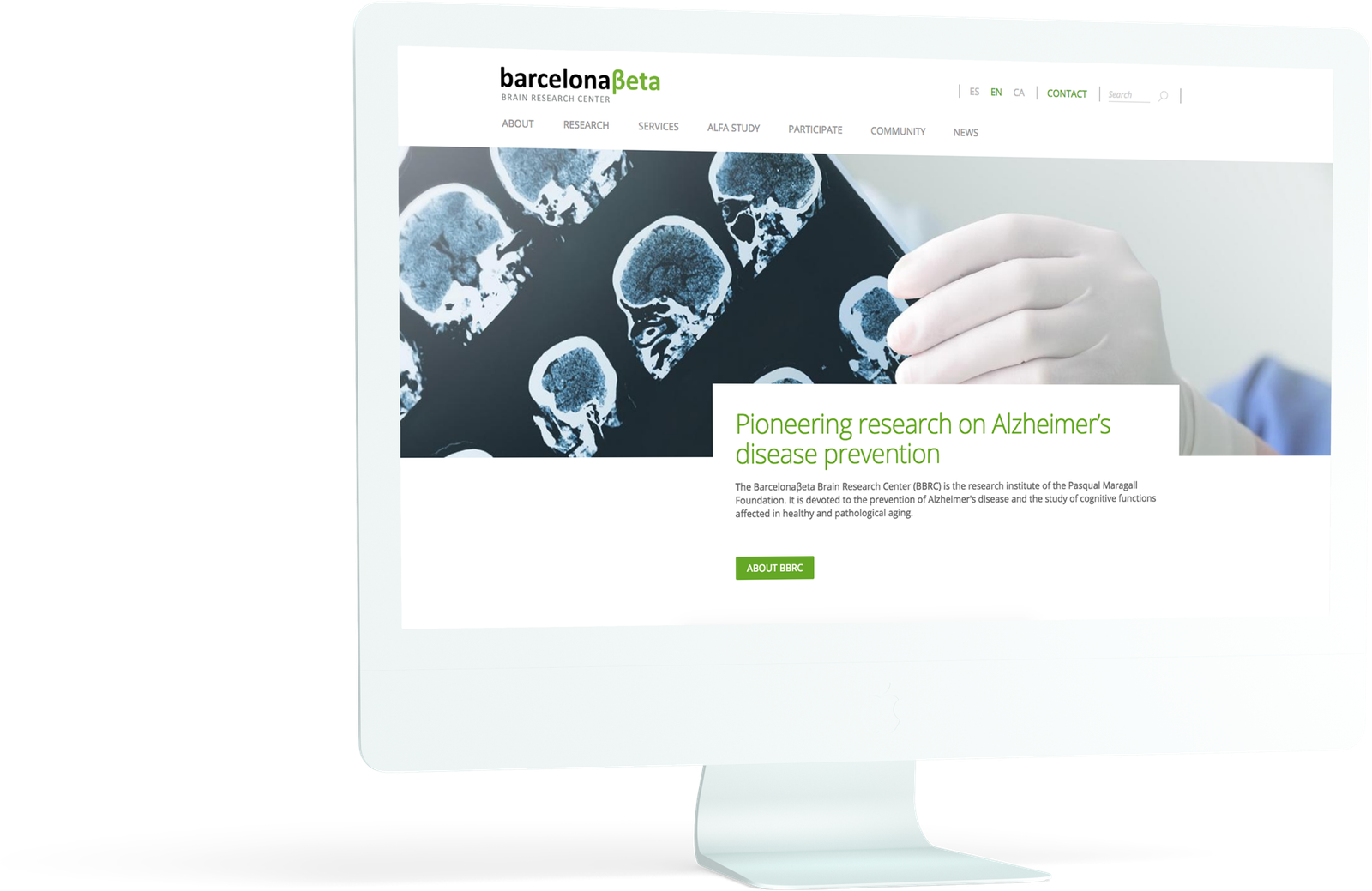 Diseño de la web corporativa del BBRC que da respuesta a la voluntad de cambio, transformación e innovación del centro de investigación.