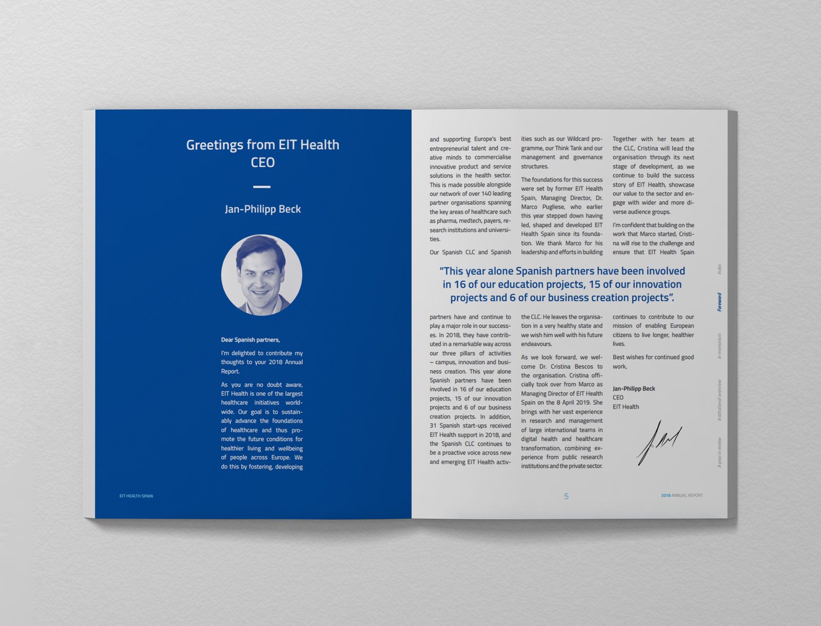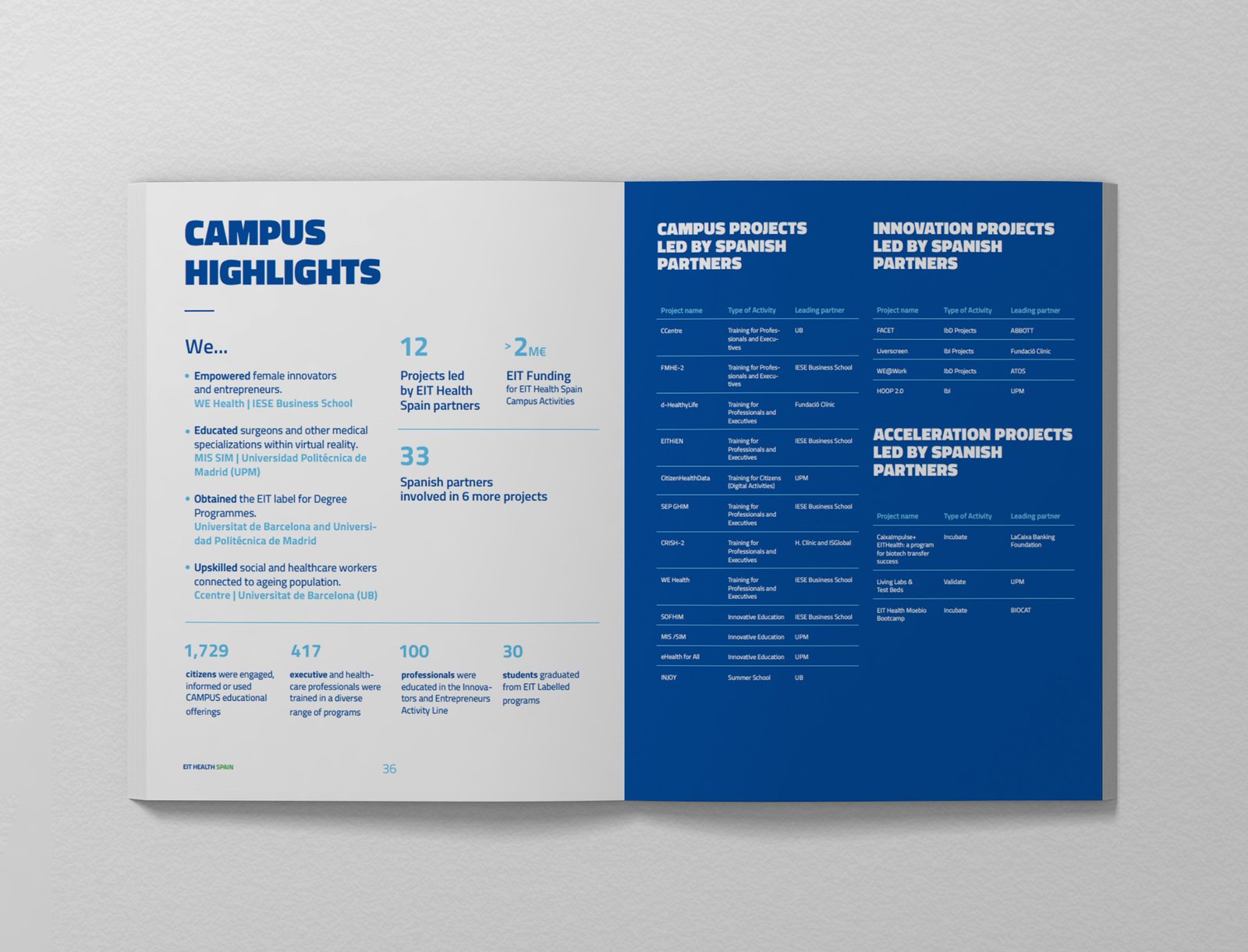 EIT HEALTH decide dar el paso y este año la memoria anual se ha diseñado en diferentes formatos, teniendo en cuenta los canales y públicos a los que va dirigida. Por un lado, el formato web como pieza principal y de mayor difusión; y por el otro, en formato papel se han creado dos versiones, la síntesis y la versión ampliada, que se utilizarán dependiendo de la ocasión.