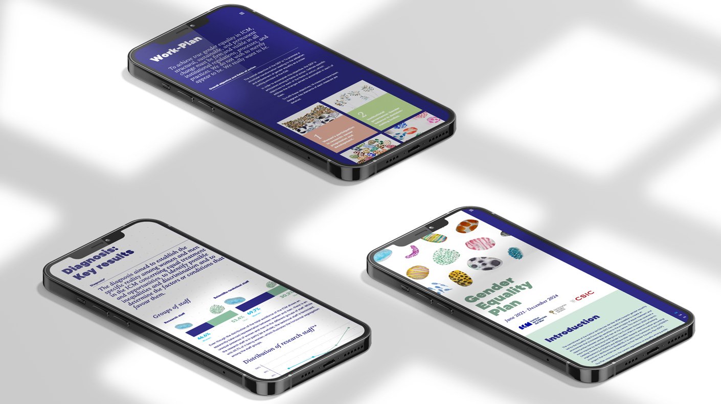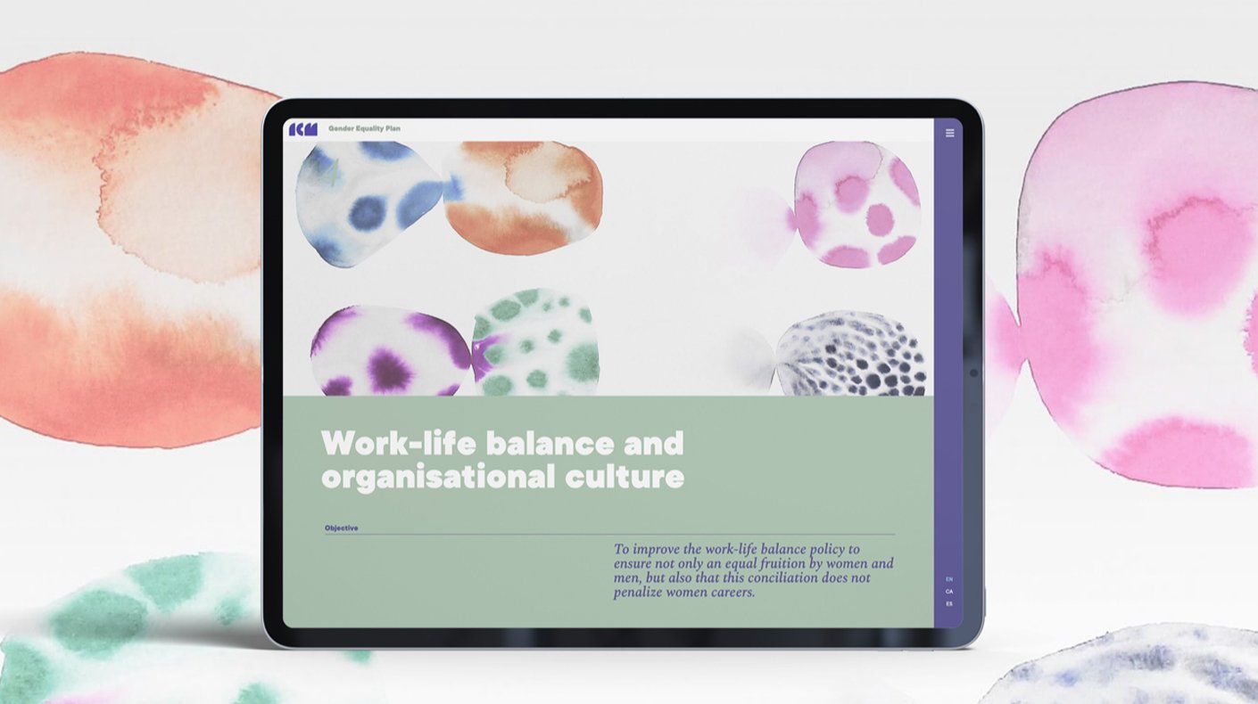 Para el ICM, era su primer Plan de Género y el equipo que lo había creado, se mostraba realmente entusiasmado. Queríamos crear una pieza que estuviera a la altura de la identidad creada para el ICM pero que a su vez, tuviera voz propia. Las ilustraciones fueron obra de Vanessa Donoso López a quién agradecemos desde aquí su participación en el proyecto. Sin su aportación y su generosidad, no hubiéramos conseguido estos buenos resultados e impacto.