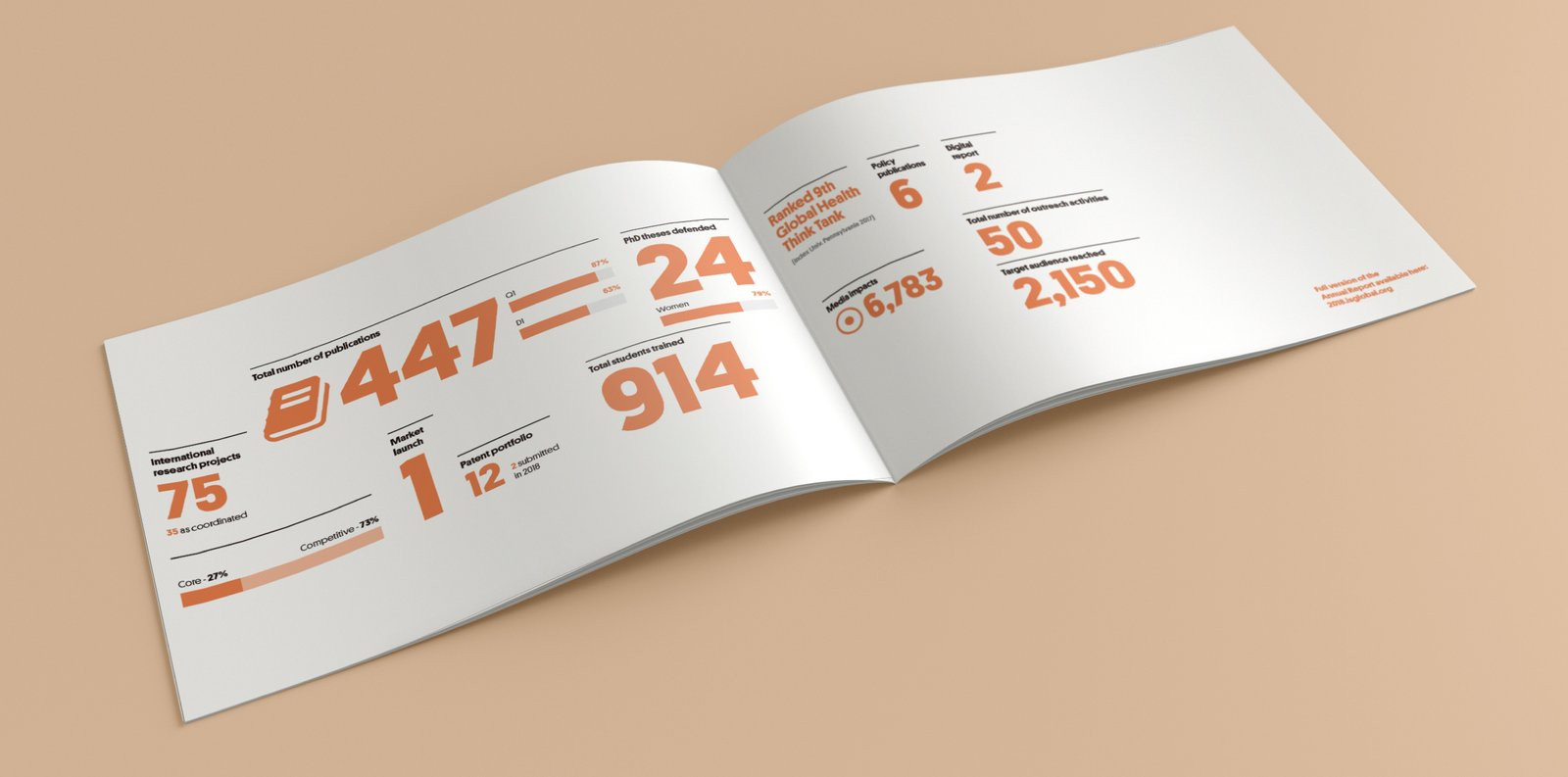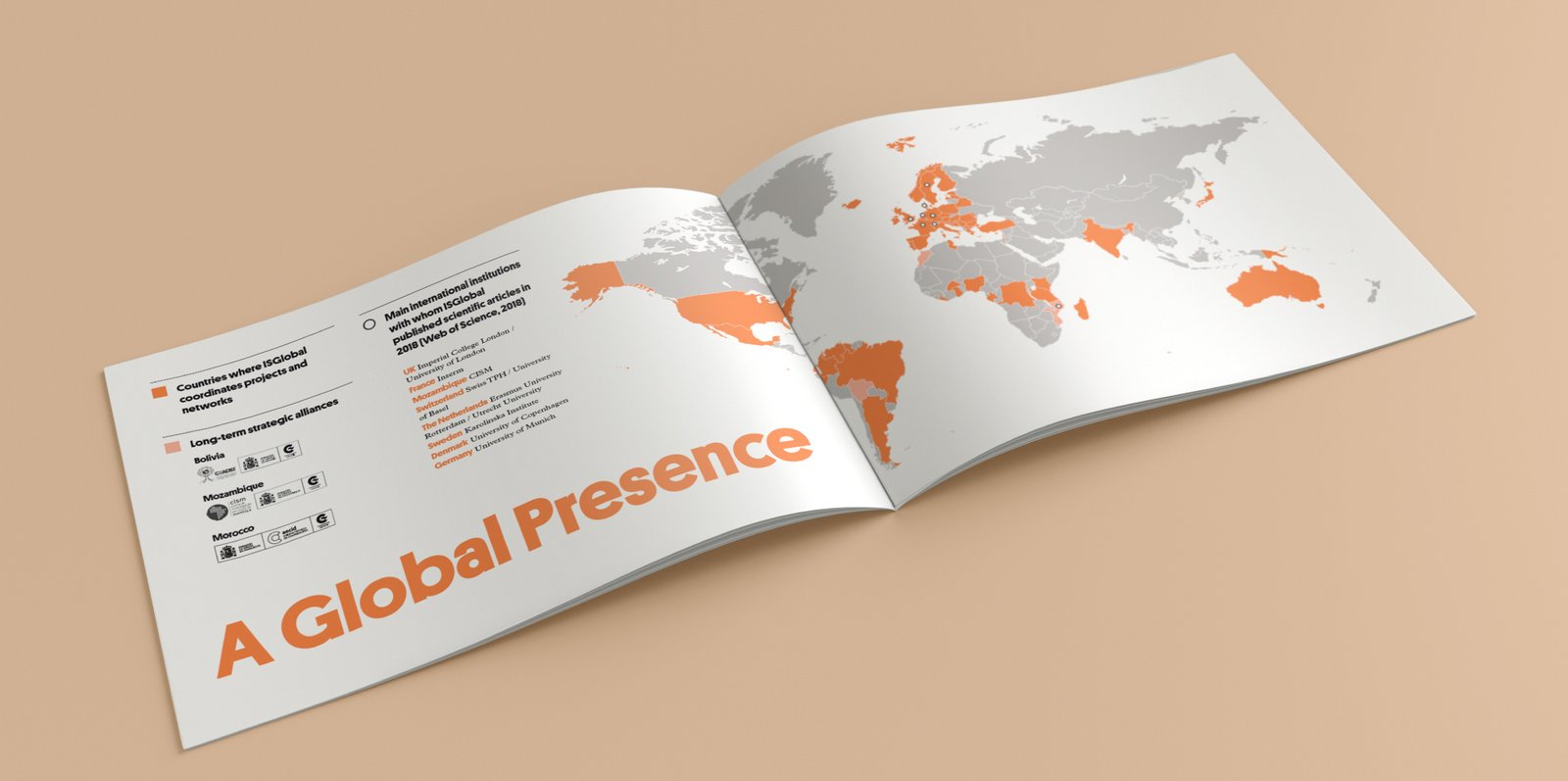 Diseño y desarrollo de la memoria anual (online e impresa) para el ISGlobal, donde hemos querido plasmar su carácter único como centro de excelencia en investigación científica.